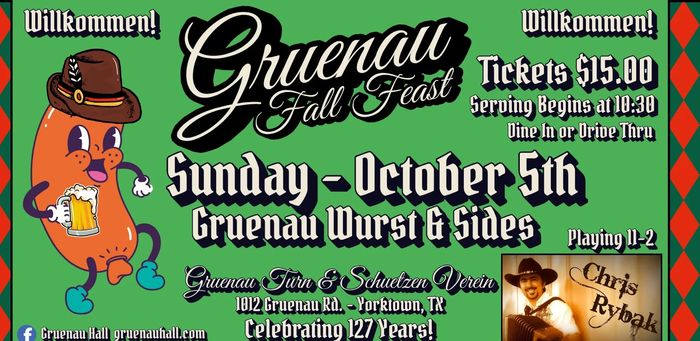 On May 1, 1898, a group of German settlers organized the Gruenau Turn and Schuetzen Verein, an athletic and shooting club just north of Yorktown, Texas. They built the original Hall that became the center of the Gruenau community. In 1927, a larger Hall was built.